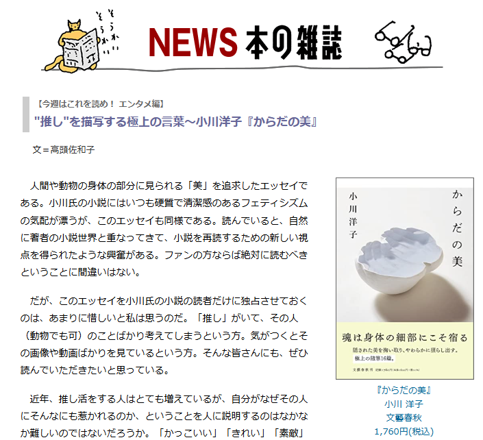 在图书上市前搜集资料的过程中,我偶然读到了一篇由日本专栏记者高头佐和子所撰写的书评。正是那篇文章,让我再度想起此前被我暂时搁置的那种不明所以的“轻快而笃定的愉悦感”,并且终于意识到它产生的源头。